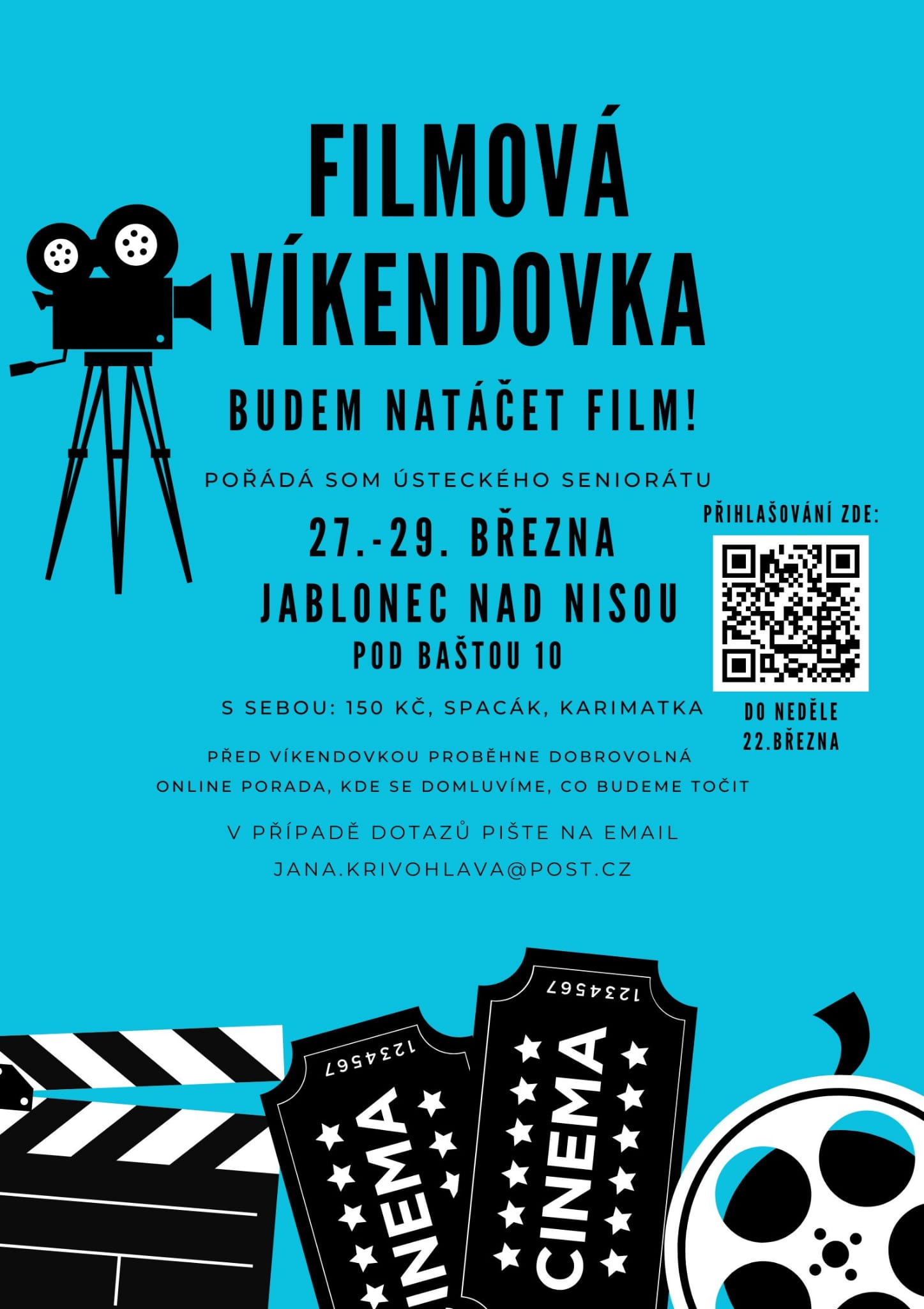 Na víkendovce budeme společně natáčet film, jaký, to se ještě dohodneme. Kromě toho se určitě můžete těšit na zpívání a hry.